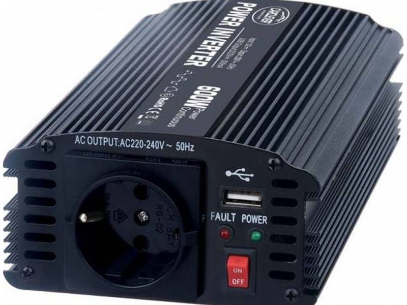 Výstupní napětí má podobu modifikované sinusoidy (obdélníkový průběh) o frekvenci 50 Hz s napětím 230V. Tento měnič je navíc vybaven USB výstupem pro nabíjení USB zařízení (MP3 přehrávač apod.).