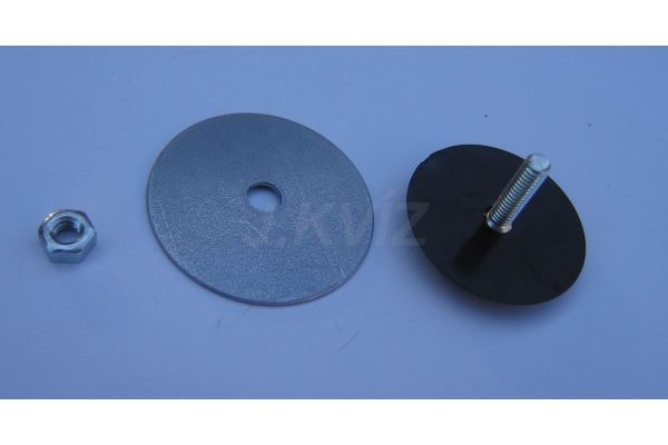 Zespoda je velká kovová podložka a připevňuje se matičkou M4, tudíž lze zakrýt "jakýkoliv" otvor do průměru záslepky.